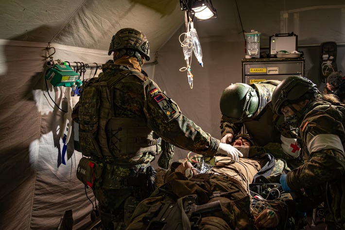 Kernelement der Patientenversorgung in militärischen Operationen bildet die Rettungskette. Sie beginnt mit der Selbst- und Kameradenhilfe am Ort der Verwundung, wird durch qualifizierte Behandlung fortgesetzt und endet in der abschließenden Behandlung sowie Rehabilitation in Deutschland.