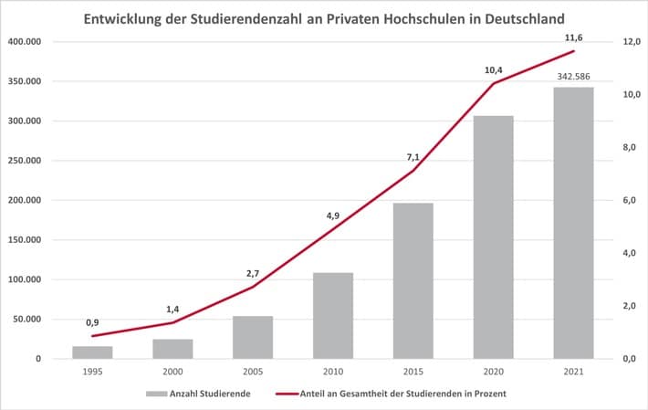 Berlin (ots) – Private Hochschulen waren noch nie so beliebt wie heute, zeigt eine neue IW-Studie, die gemeinsam mit dem Verband der Privaten Hochschulen entstanden ist: Rund 343.000 Menschen studierten hier zuletzt, das entspricht rund 11,6 Prozent aller Studierenden in…