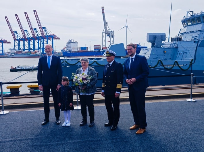 Nächster Meilenstein für die Stärkung der Deutschen Marine: Als Taufpatin hat die neue Präsidentin des Bundesamtes für Ausrüstung, Informationstechnik und Nutzung der Bundeswehr (BAAINBw), Annette Lehnigk-Emden, heute die zweite von insgesamt fünf neuen Korvetten der Klasse 130 auf den Namen „Emden“ getauft. Der Festakt fand bei der Blohm+Voss Werft in Hamburg statt.