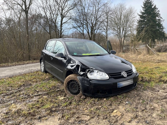 In einem nicht alltäglichen Fall ermitteln derzeit die Beamten der Unfallfluchtgruppe der Kasseler Polizei und bitten dabei um Hinweise durch Zeugen. Eine Streife des Polizeireviers Süd-West war am Sonntagmittag gegen 11 Uhr zu einem Pkw gerufen worden, der mit offenen Türen und steckendem Schlüssel, aber ohne Fahrer, auf einem Feld nahe der L 2315 zwischen Schauenburg-Elgershausen und -Hoof stand. Die Polizisten stellten fest, dass der schwarze VW Golf offenbar zuvor von dem neben der Landstraße verlaufenden Feldweg abgekommen und in dem matschigen Feld steckengeblieben war. Das Auto wies einen frischen Unfallschaden im vorderen rechten Bereich auf, allerdings gab es rund um den Fundort keine zu dem Schaden passende Unfallstelle. Der Pkw wurde sichergestellt und abgeschleppt. Die weiteren Ermittlungen bei der Fahrzeughalterin führten die Beamten schließlich zu dem mutmaßlichen Fahrer des VW Golf, einem 54-jährigen Mann aus dem Landkreis Kassel. Dieser räumte in seiner Vernehmung gegenüber den Polizisten ein, dass er in der Nacht von Samstag auf Sonntag völlig übermüdet mit dem VW Golf unterwegs war, sich aber an den Unfall oder die Unfallstelle nicht erinnern kann. Der Führerschein des 54-Jährigen, der sich nun wegen unerlaubten Entfernens vom Unfallort und Gefährdung des Straßenverkehrs verantworten muss, wurde sichergestellt.